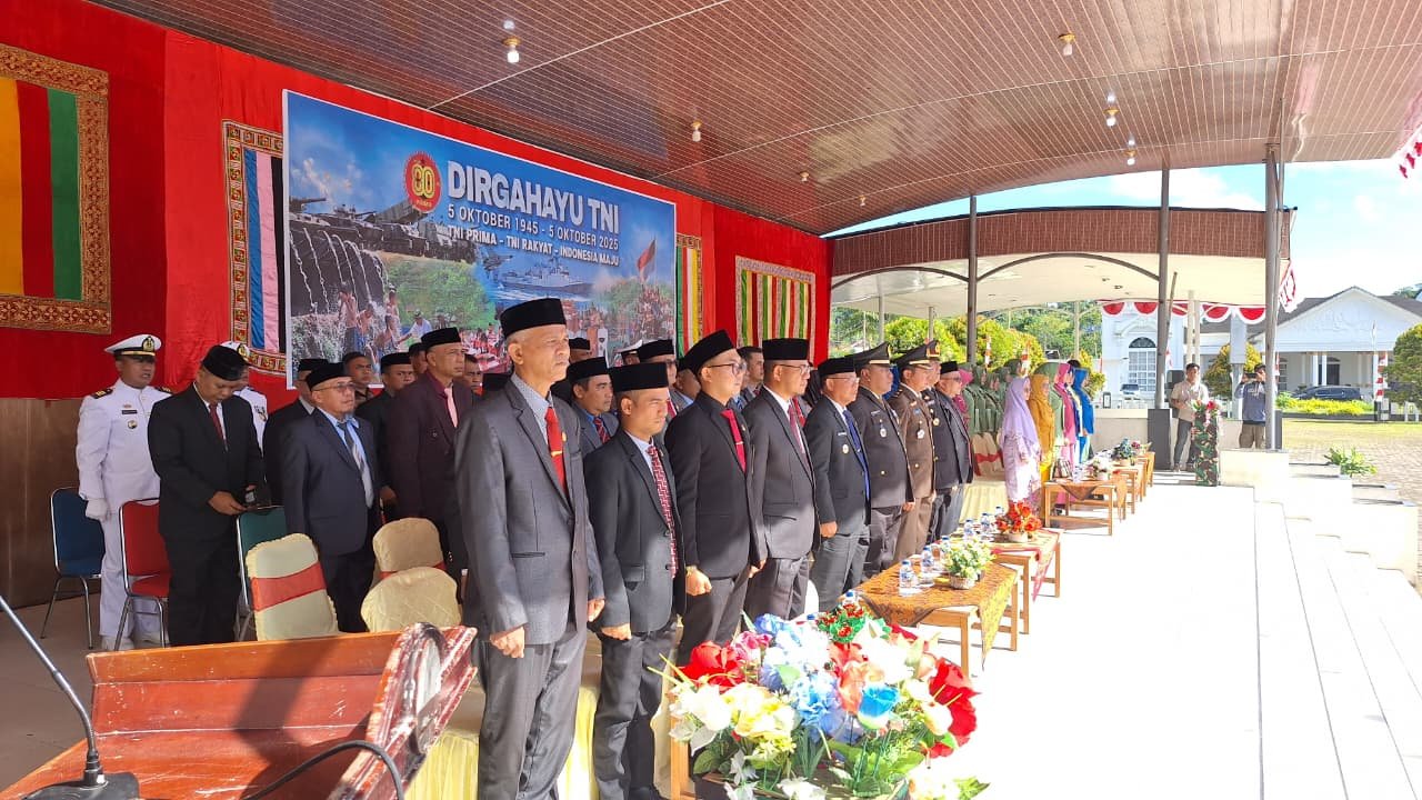 Upacara ini mengusung tema “TNI Prima, TNI Rakyat, Indonesia Maju” dan diikuti oleh seluruh unsur TNI, Polri, Forkopimda, serta instansi pemerintahan dan pelajar di wilayah Kabupaten Simeulue, Minggu (5/10/2025).