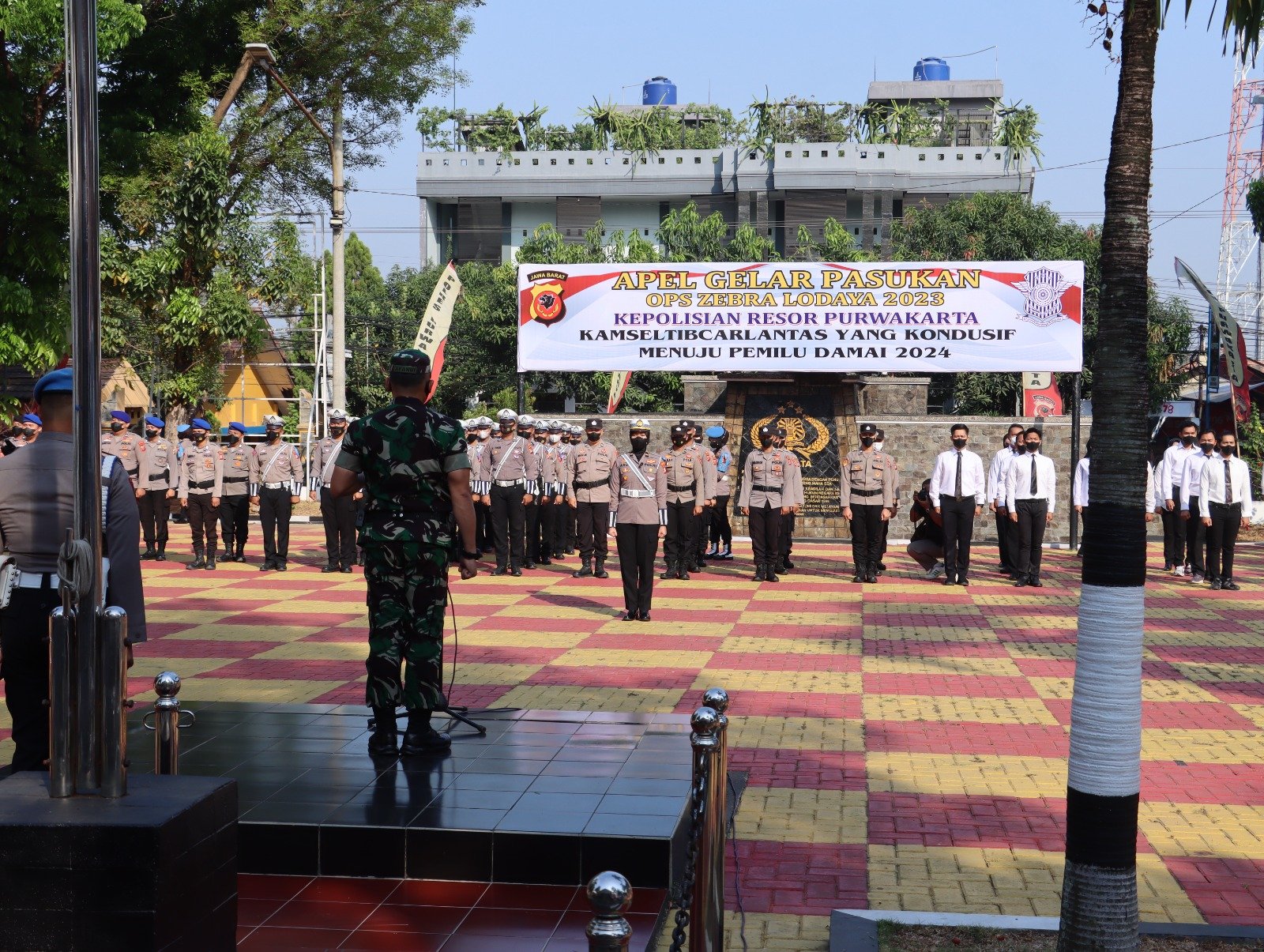 Purwakarta- Wujud sinergitas TNI dan Polri, Dandim 0619/Purwakarta, Letkol Arm Andi Achmad Afandi nmemimpin Apel Gelar Pasukan Operasi Zebra Lodaya 2023 di Mapolres Purwakarta, Polda Jawa Barat, pada Senin, 4 September 2023.