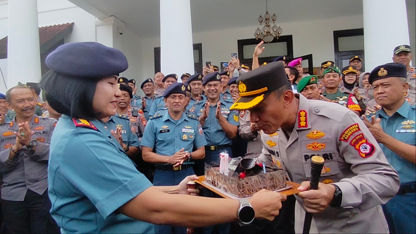 Kapolrestabes Kota Bandung juga mengucapkan banyak terima kasih kepada rombongan dari Lanal Bandung dan Kodim 0618/BS yang secara khusus datang ke Mapolres untuk merayakan Hari Bhayangkara ke-77. Atas kedatangan bapak ibu sekalian ini adalah bentuk Kekompakan antara TNI/Polri bentuk sinergisitas antara TNI dan Polri. Dengan mendatangi Mako dan membawa kue saja itu sudah yang paling dalam sekali dan insya Allah Alhamdulillah selama saya hampir 3 bulan disini saya melihat kekompakan khususnya TNI di kota Bandung sangat terjaga Alhamdulillah, maka dari itu saya harapkan ini tetap terbina kami dan seluruh jajaran tetap menjaga kekompakan Karena kalau TNI kompak insya Allah khususnya Kota Bandung pasti akan aman dan nyaman.