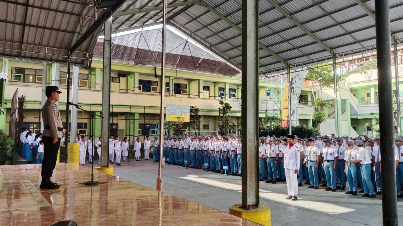 Ratusan siswa mendapat pembinaan langsung dari Kasat Binmas Polres Kediri AKP Barkah Ramsul, S.H., yang hadir sebagai pembina upacara.