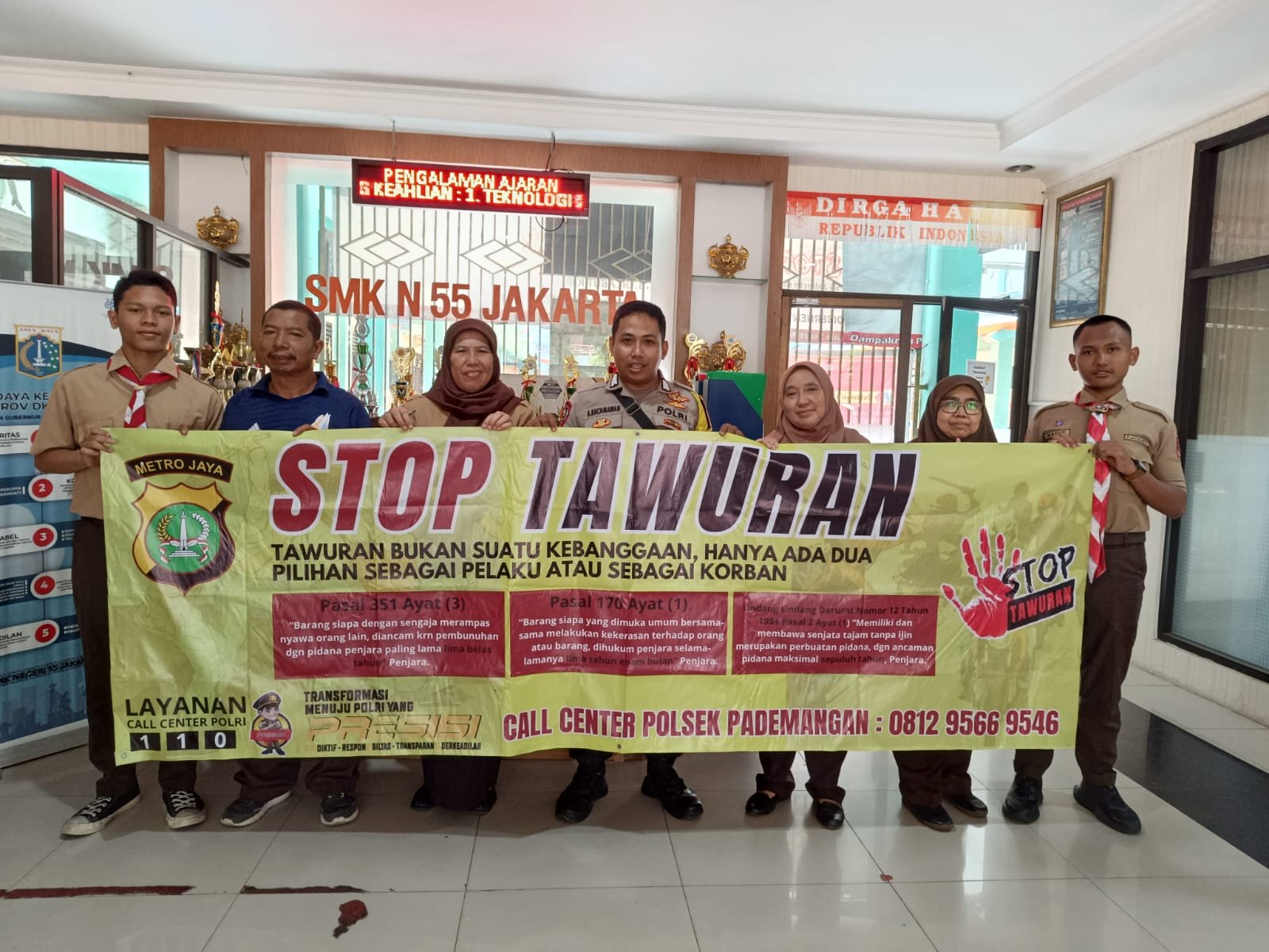 Spanduk ini tidak hanya dipasang di gerbang sekolah-sekolah yang sering menjadi titik rawan konflik, tetapi juga di pusat-pusat keramaian. Pada Rabu, 16/10/24 di SMK N 55 Jakarta, Jl.Pad.VII RT.15/RW 1 Pademangan Timur Kec. Pademangan Jakarta Utara.