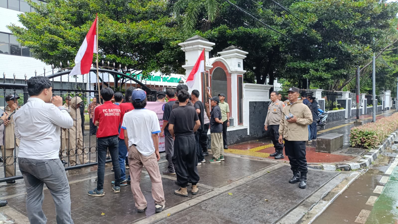 refubliknews.com, || Jakarta Pusat — Personel Polsek Sawah Besar melaksanakan pelayanan dan pengamanan di awali dengan spanduk bertuliskan ” Selamat datang pejuang aspirasi, Sampaikan pendapat dengan Tertib, Kami siap melayani Anda ” dalam melayani aksi unjuk rasa yang dilakukan Serikat Alumni Raden Intan Lampung Jabodetabek di depan Kementerian Agama (Kemenag) RI, Sawah Besar, Jakarta Pusat, Kamis (12/2/2026). Kegiatan pengamanan dipimpin Kapolsubsektor Pasar Baru Aiptu Ranu Prahwoto, untuk memastikan penyampaian aspirasi berjalan tertib, aman, dan kondusif.