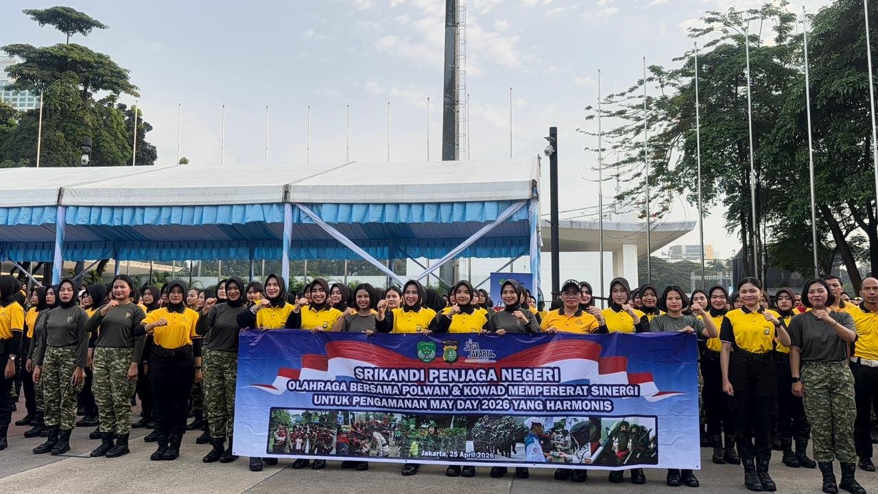 Kegiatan yang dimulai pukul 06.00 WIB tersebut diikuti jajaran Polisi Wanita (Polwan) dan Korps Wanita Angkatan Darat (Kowad) sebagai bagian dari upaya memperkuat soliditas, kebugaran, serta kesiapan personel dalam mendukung pelayanan penyampaian pendapat di muka umum pada momentum May Day Fiesta 2026.