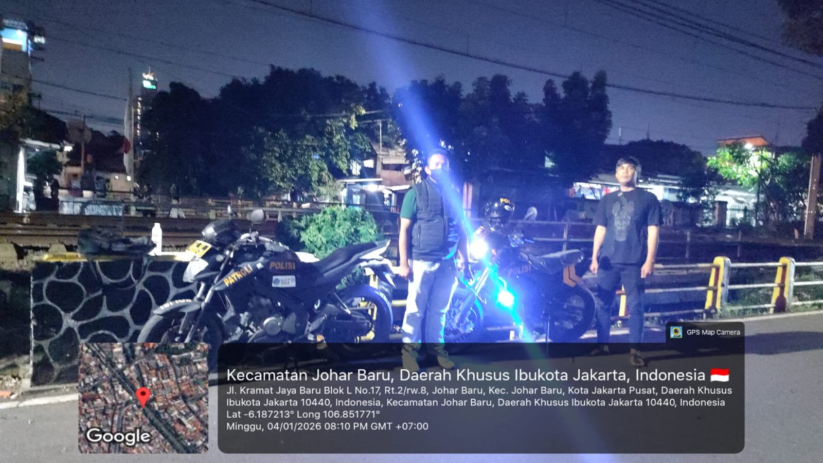 Kegiatan tersebut dilaksanakan pada Minggu malam, 4 Januari 2026, mulai pukul 20.00 WIB hingga jelang Senin pagi. Unit Reskrim Tim 1 bersama Unit Binmas Polsek Johar Baru disiagakan di Jalan Percetakan Negara I, tepatnya di perbatasan wilayah RT 02 RW 08 Kelurahan Johar Baru dengan RT 04 RW 07 Kelurahan Paseban, Kecamatan Senen, Jakarta Pusat.