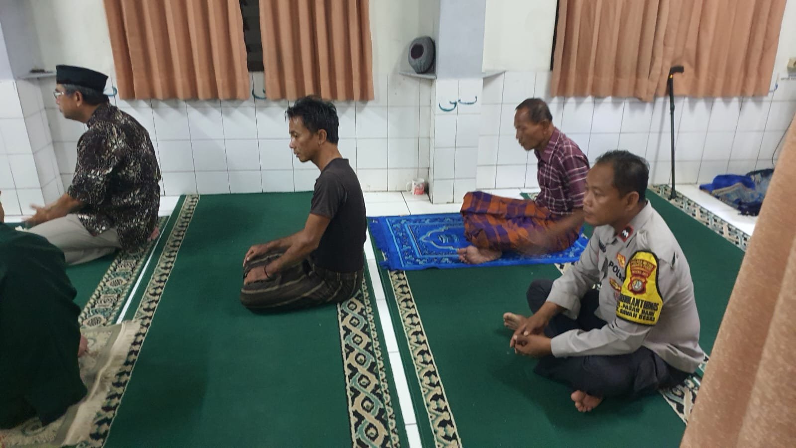 Dalam kesempatan tersebut, Aipda Bambang berinteraksi langsung dengan Ustadz Mustofa, selaku imam masjid, serta beberapa jamaah lainnya, termasuk Sdr. Hasanudin. Setelah salat subuh, mereka mengadakan obrolan santai seputar situasi keamanan dan ketertiban masyarakat (kamtibmas), membahas berbagai hal terkait kenyamanan warga selama menjalankan ibadah puasa di bulan suci ini.