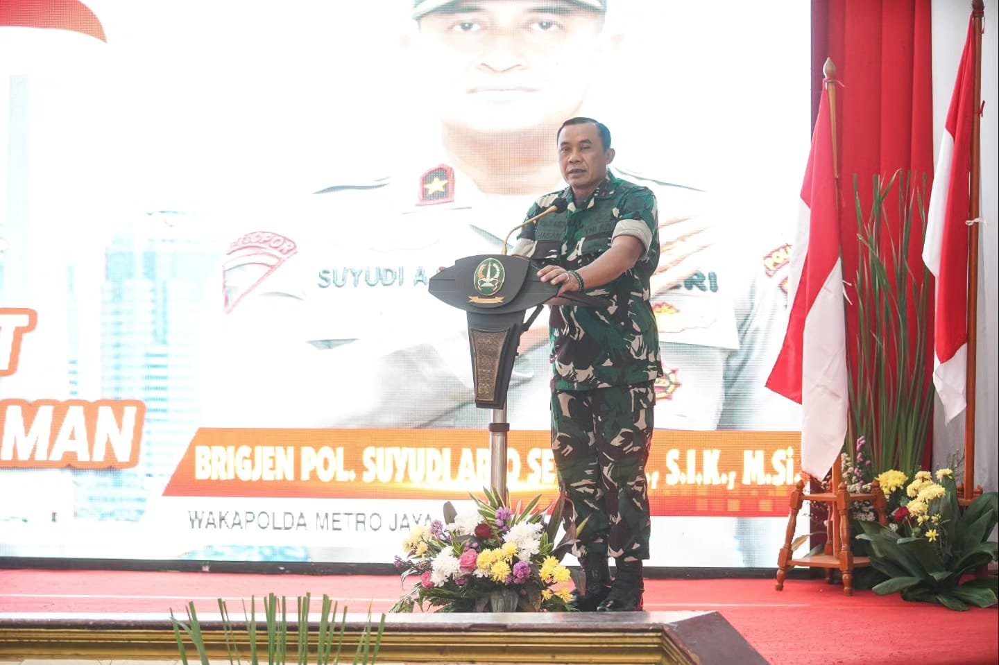 Kodam Jaya_Jakarta Selatan. Pangdam Jaya Mayjen TNI Mohamad Hasan menghadiri acara silaturahmi Kapolda Metro Jaya dengan Forkompinda dan Tokoh Masyarakat dalam rangka mensukseskan Pemilu 2024 Damai dan Aman, di Gedung Balai Pertemuan Polda Metro Jaya, Jl. Jenderal Sudirman, Jakarta Selatan, Senin, (13/11/2023).
