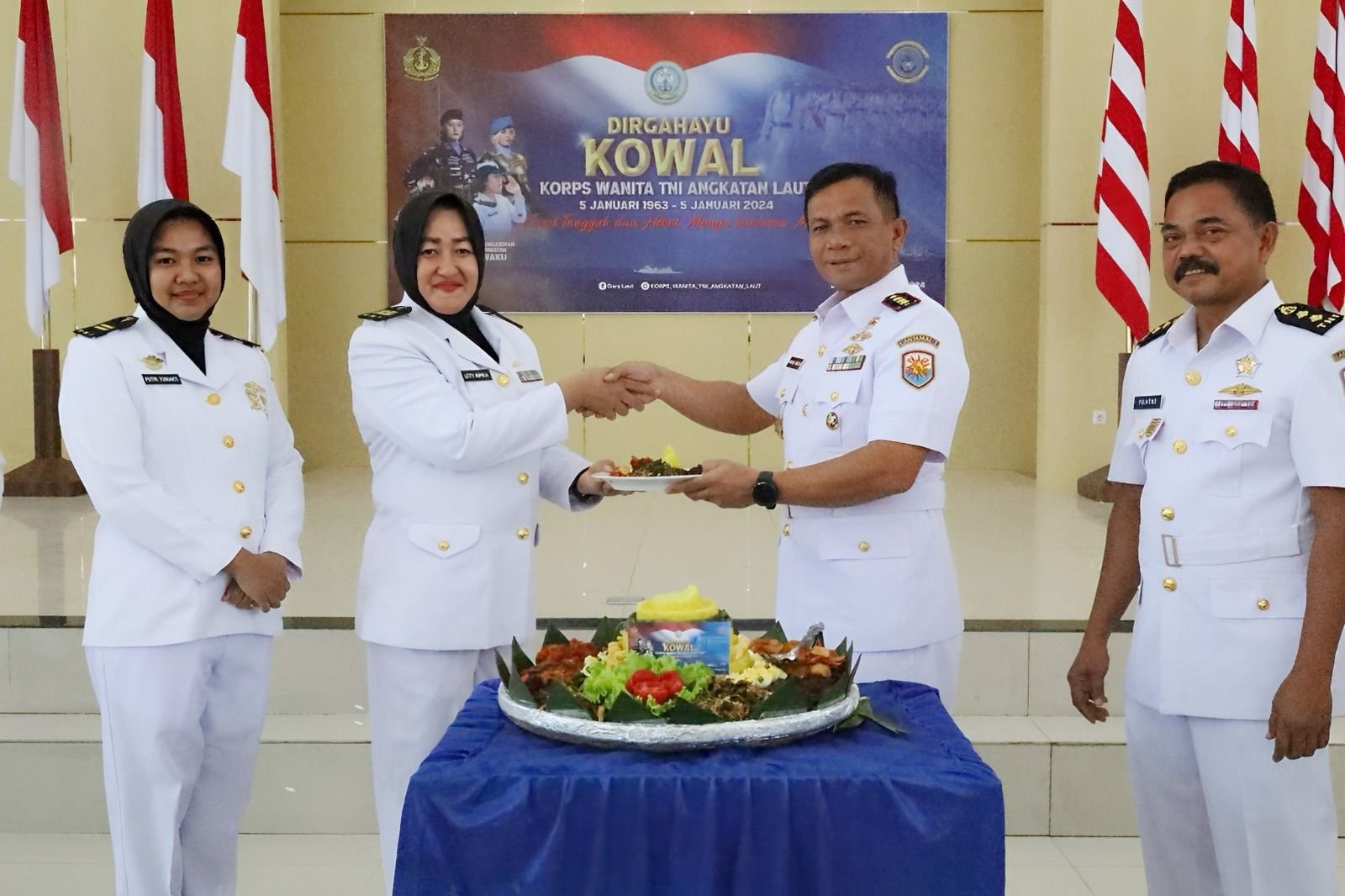 TNI AL, Dumai,- Komandan Lanal Dumai Kolonel Laut (P) Kariady Bangun pimpin pelaksanaan Syukuran dalam rangka HUT Ke-61 Korps Wanita Angkatan Laut (Kowal) Tahun 2024, bertempat di Gedung Wijaya Kusuma Mako Lanal Dumai, Jalan Yos Sudarso No. 1, Kelurahan Buluh Kasap, Kecamatan Dumai Timur, Kota Dumai, Jum’at (05/01/2024).