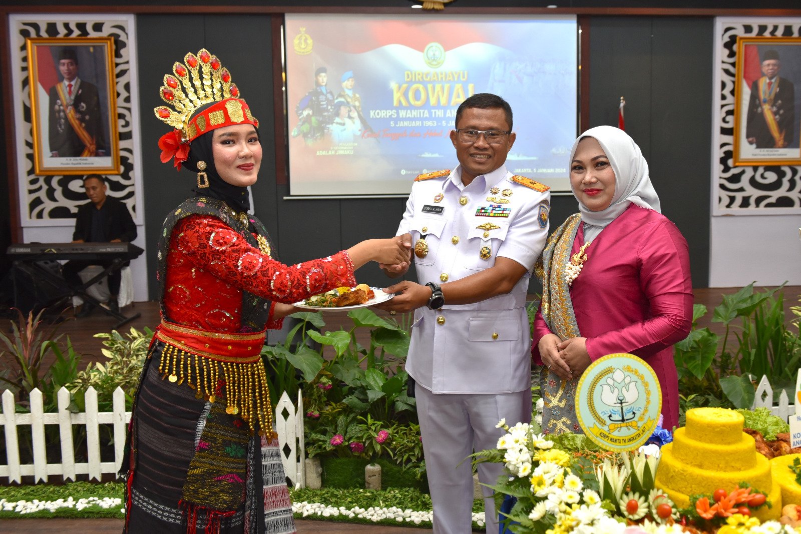 TNI AL, Belawan,- Komandan Pangkalan Utama TNI Angkatan Laut I (Danlantamal I) Laksamana Pertama TNI Dores Afrianto Ardi, S.E., M.Si., M.Han., CHRMP., didampingi Ketua Korcab I DJA I Ny. Santhi Dores Afrianto menghadiri acara Syukuran Peringatan Hari Ulang Tahun Ke-61 Korps Wanita TNI Angkatan Laut (Kowal) Tahun 2024, dengan tema “Kowal Tangguh dan Hebat Menuju Indonesia Maju”, bertempat di Gedung Yos Sudarso Mako Lantamal I, Jalan Serma Hanafiah No. 01, Belawan, Sumatera Utara, Jumat (05/01/2024).