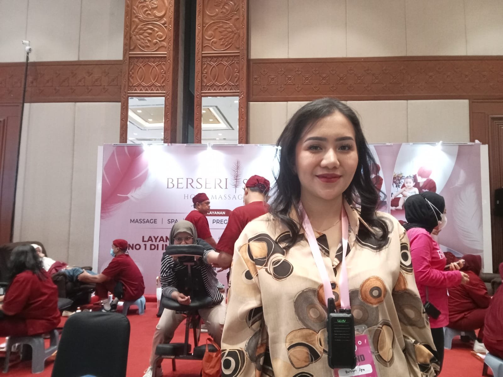Aneesa Tanjung, owner dari Berseri Spa Home Massage, ketika diwawancarai oleh media di booth Bersemi Spa Home Massage, menjelaskan mengenai seputar pelayanan dari Bersemi Spa Home Massage.
