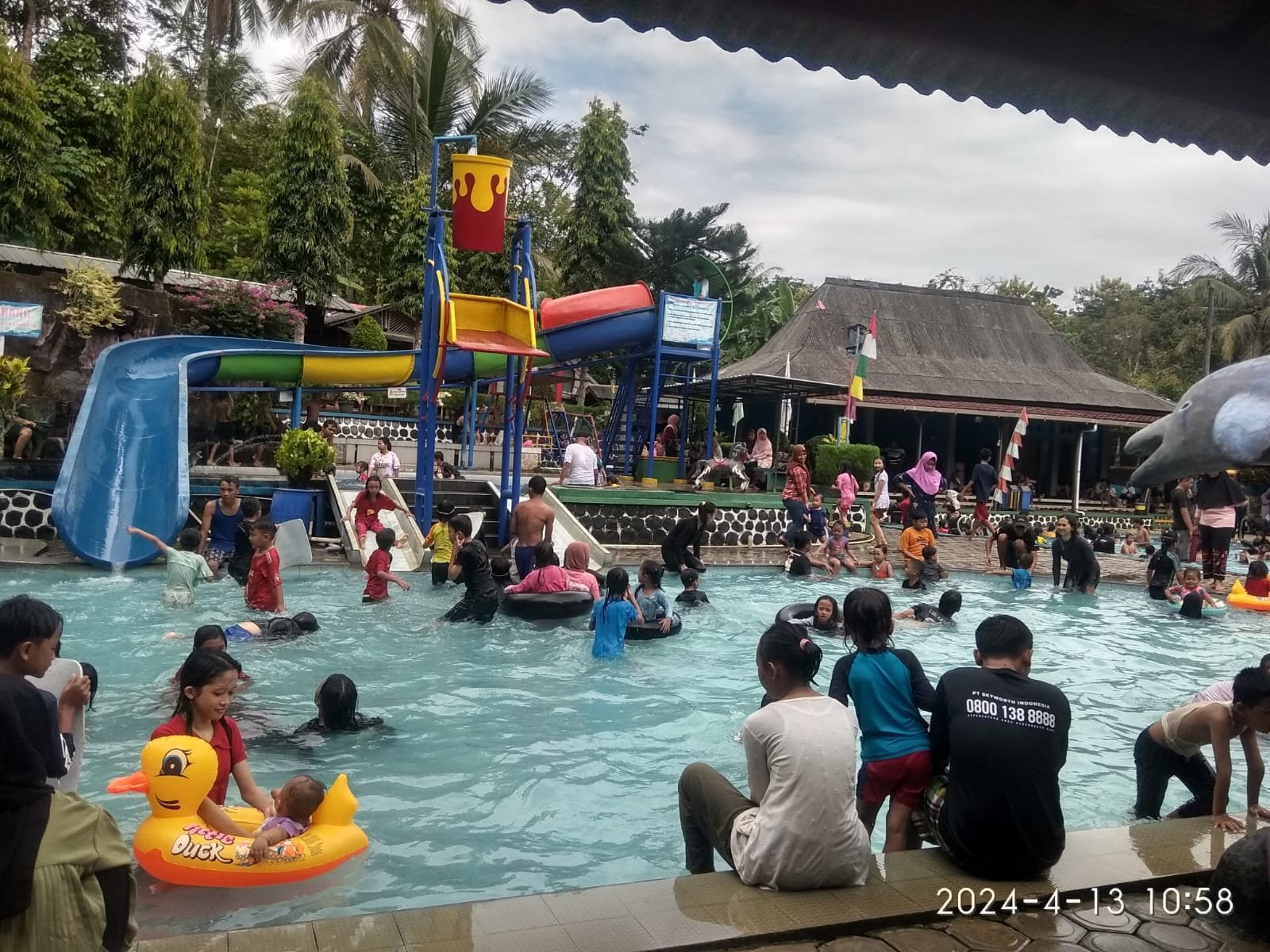 di lokasi pada Sabtu (13/4/2023) Nampak masyarakat yang berkunjung terlihat memadati tempat tersebut dengan membawa keluarga dan anak anak untuk mengisi liburan hari raya idul fitri.