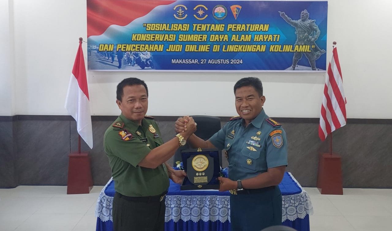 refubliknews.com, – TNI AL, Makassar,- Personel Satuan Lintas Laut Militer (Satlinlamil) 3 dan ABK KRI Teluk Hading-538 menerima Sosialisasi tentang Peraturan Konservasi Sumber Daya Alam Hayati dari Balai Konservasi Sumber Daya Alam (BKSDA) Sulawesi Selatan, Pencegahan Judi Online dari Pomal Kolinlamil, dan Rekam Jejak Digital dari Disinfolahta Kolinlamil, bertempat di Ruang Rapat Mako Satlinlamil 3, Jalan Teuku Umar, Makassar, Selasa (27/8/2024).