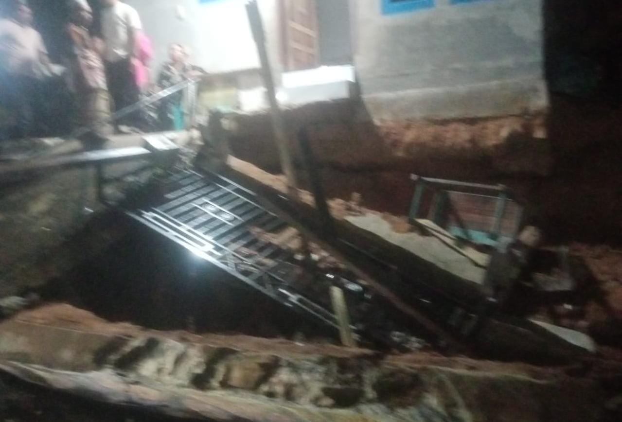 - Tanah runtuh mengakibatkan kerusakan berat pada bagian bawah rumah milik Mhd. Yusuf Zalukhu sampai ujung perbatasan aliran air.