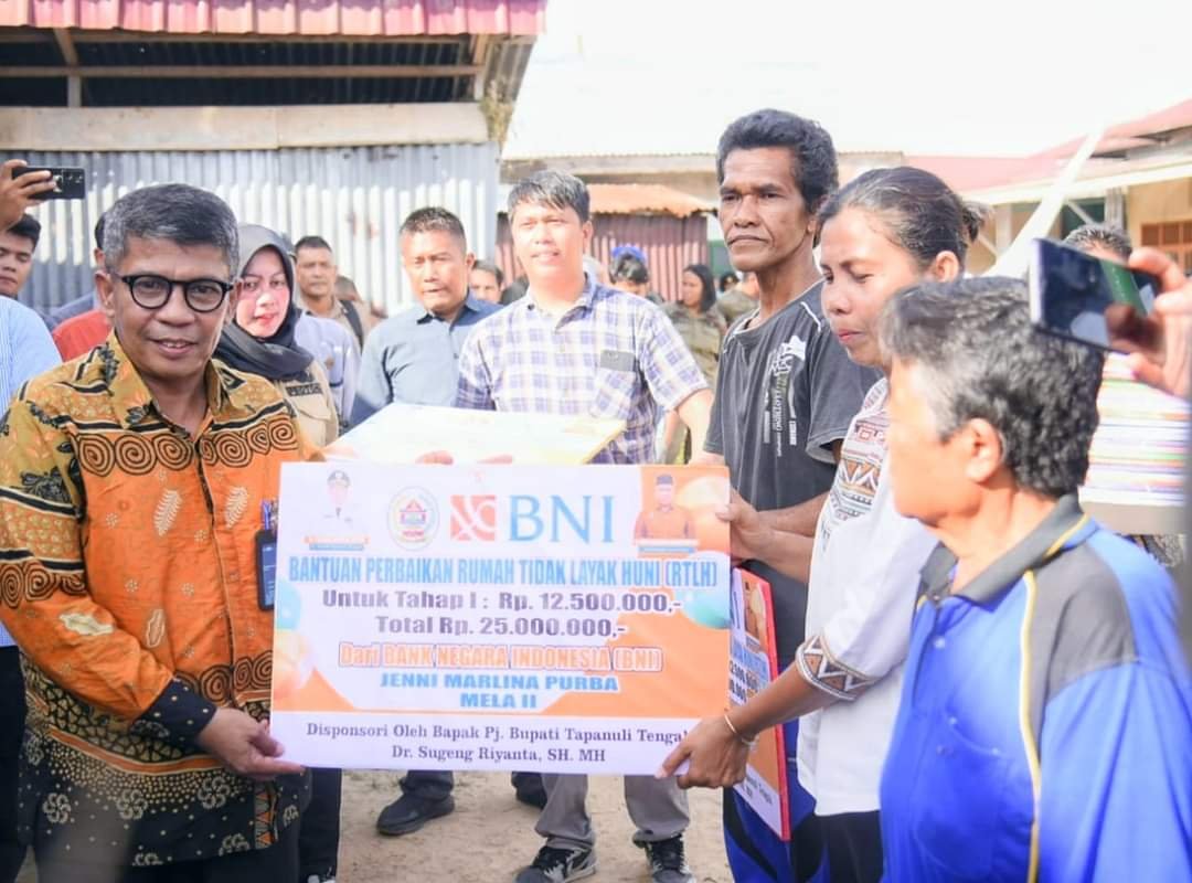 PANDAN-Sebagai bentuk kepedulian terhadap masyarakat Kabupaten Tapanuli Tengah yang masih tinggal dirumah tidak layak huni dan Balita yang terkena Stunting, Pj. Bupati Tapanuli Tengah Dr. Sugeng Riyanta, SH, MH kembali memberikan Bantuan Rehab RTLH program “TAPTENG MEMBARA” sebanyak 41 Unit dan Pemberian Makanan Tambahan berupa Susu dan Telur untuk 23 Anak yang terkena Stunting yang dananya bersumber dari Forum CSR. Kegiatan ini di pusatkan di Lingkungan III Lubuk Tukko Kecamatan Pandan, pada Jum’at (25/10/2024).