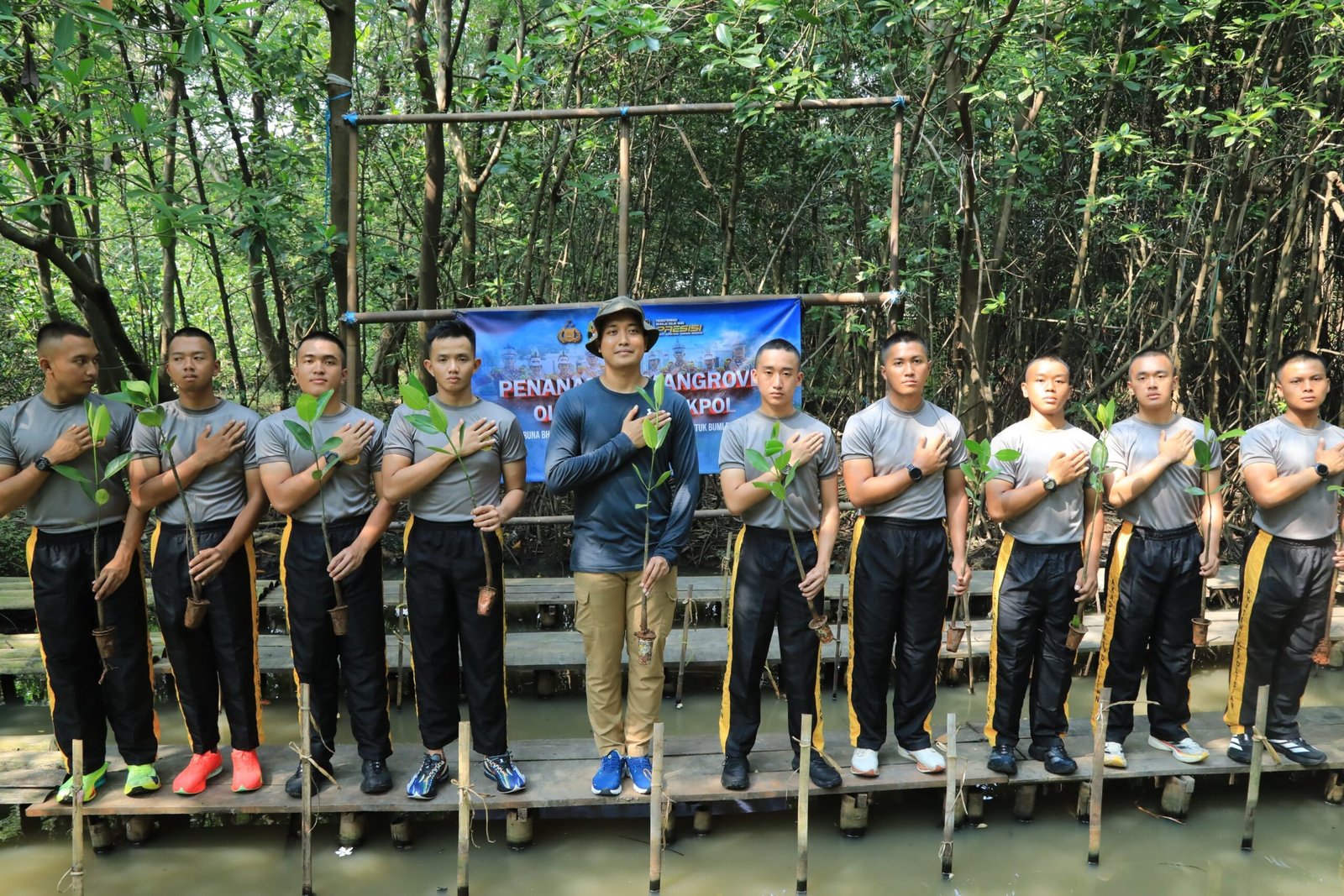 refubliknews.com,- Jakarta – Sebanyak sepuluh Taruna Akademi Kepolisian (Akpol) menggelar kegiatan penanaman 100 pohon bakau di Taman Wisata Alam Angke, Jakarta Utara, sebagai bentuk nyata kepedulian terhadap lingkungan hidup.