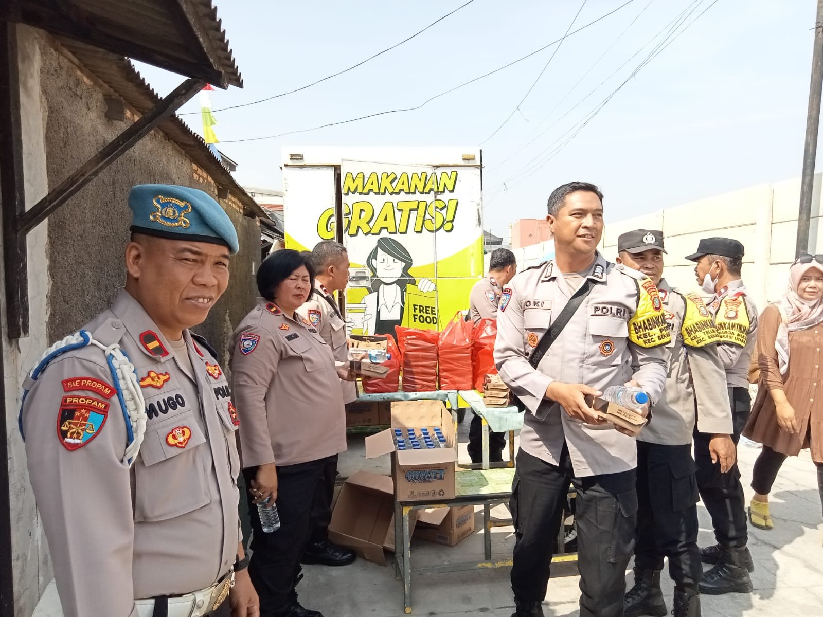 Sebanyak 300 box makanan dan air mineral dibagikan kepada warga yang membutuhkan. Pembagian makan gratis ini merupakan wujud kepedulian Polri, khususnya Polsek Bekasi Utara, terhadap masyarakat sekitar.