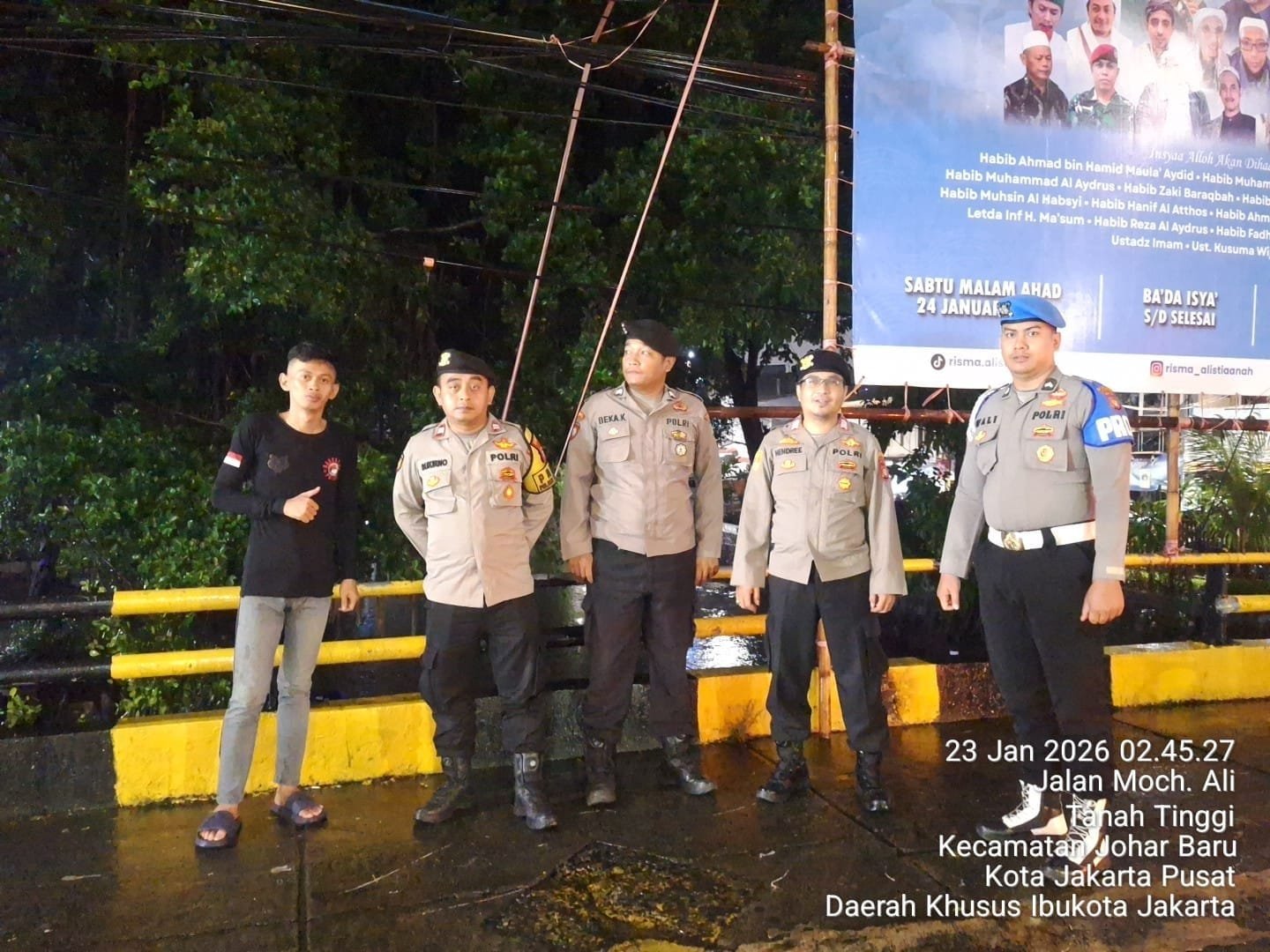 Sementara itu, Kapolsek Johar Baru, Kompol Saiful Anwar, menegaskan bahwa dalam patroli tersebut personel juga memberikan imbauan kamtibmas secara humanis kepada warga dan remaja yang masih beraktivitas pada dini hari. “Kami mengingatkan agar tidak terjadi gesekan atau tawuran, serta mengajak masyarakat berperan aktif menjaga keamanan lingkungan masing-masing,” kata Saiful.