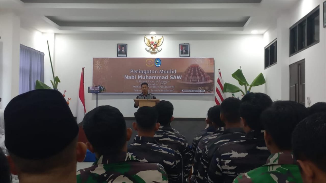 refubliknews.com, || TNI AL, Makassar,- Keluarga Besar Satuan Lintas Laut Militer (Satlinlamil) 3 Kolinlamil Peringati Maulid Nabi Mukammad SAW 12 Rabiul Awal 1447 H/2025 M, dengan tema “Membangun Karakter Personel TNI Prima Melalui Sunnah Rasulullah”, bertempat di Ruang Rapat Mako Satlinlamil 3, Jalan Teuku Umar, Kota Makassar, Senin (15/9/2025).