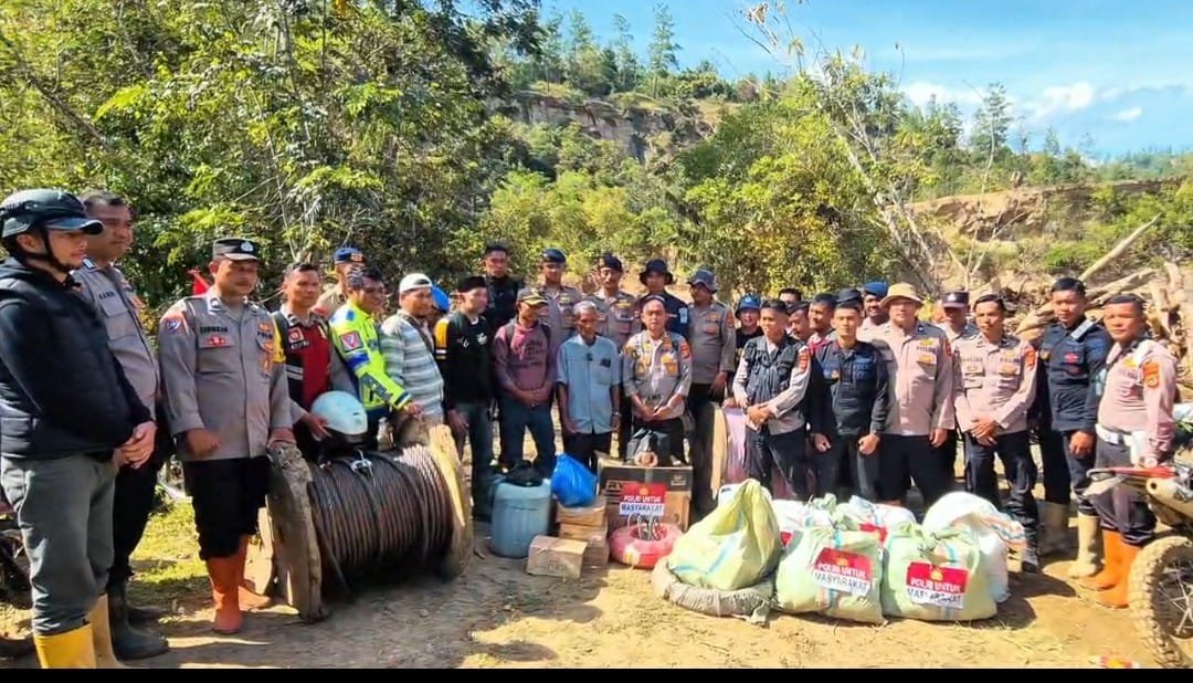 Selain bantuan sembako, Kapolres Aceh Tengah juga mengawal pendistribusian bantuan berupa sling kawat baja sepanjang 1.000 meter (dua gulung) dari BPBD Aceh Tengah.
