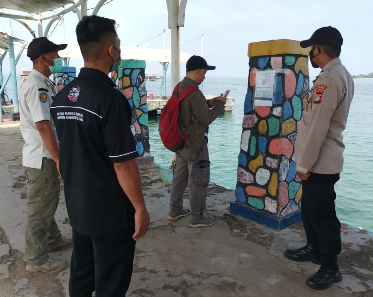 “Kami rutun melaksanakan kehiatan pengamanan di dermaga kedatangan. Hari ini, tercatat 424 penumpang kapal baik itu wisatawan maupun warga asli Pulau Seribu tiba di dermaga kedatangan dan kami wajibkan untuk scan PeduliLindungi,” ujar Wisnu.