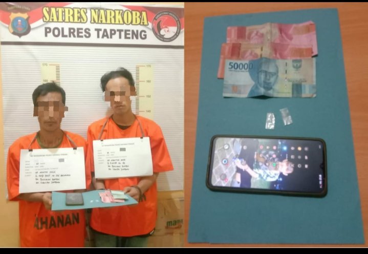 Kapolres Tapanuli Tengah AKBP Basa Emden Banjarnahor, S.I.K., M.H, melalui Kasat Narkoba Polres Tapteng Iptu Gunawan Sinurat, SH, MH menjelaskan bahwa dari penangkapan tersebut, Tim Opsnal berhasil menyita 2 (Dua) paket kecil narkotika jenis Sabu, 1 (Satu) unit HP Android dan Uang Tunai sebanyak Rp. 250.000