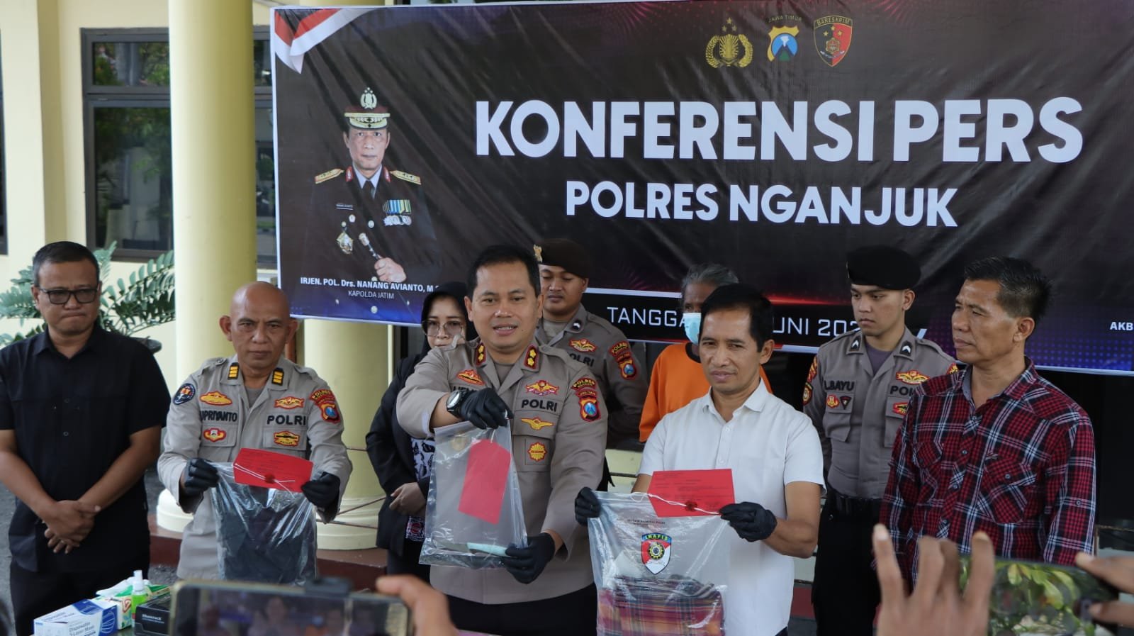 “Benar, kami telah menangkap pelaku pembunuhan yang terjadi di bawah jembatan Ringinanom. Pelaku AS berhasil diamankan saat berjalan kaki di Jalan Yos Sudarso, Ngawi. Saat diperiksa, dia mengakui perbuatannya telah menusuk korban berulang kali hingga meninggal dunia,” tegas Kapolres Nganjuk AKBP Henri Noveri Santoso, S.H., S.I.K., M.M. saat konferensi pers di Mapolres Nganjuk, Kamis (12/6/2025).
