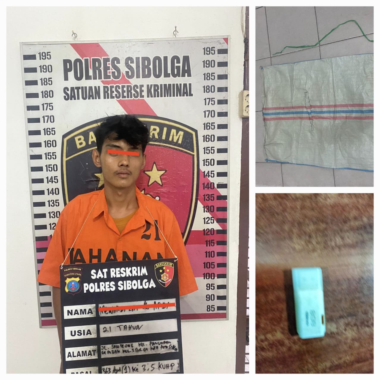 Dalam Penyelidikan yang dilakukan oleh Tim Opsnal Sat Reskrim Polres Sibolga, berdasarkan informasi dari pelapor dan rekaman CCTV, pada Rabu, 19 Juni 2024 sekitar pukul 22.20 WIB, Tim berhasil melacak keberadaan Pelaku di Jl. Patuan Anggi, Kelurahan Pancuran Gerobak, Kecamatan Sibolga Kota, Kota Sibolga. Pelaku yang diketahui bernama MZ Alias A (21 Tahun) diamankan tanpa perlawanan di Jalan Patuan Anggi Sibolga.