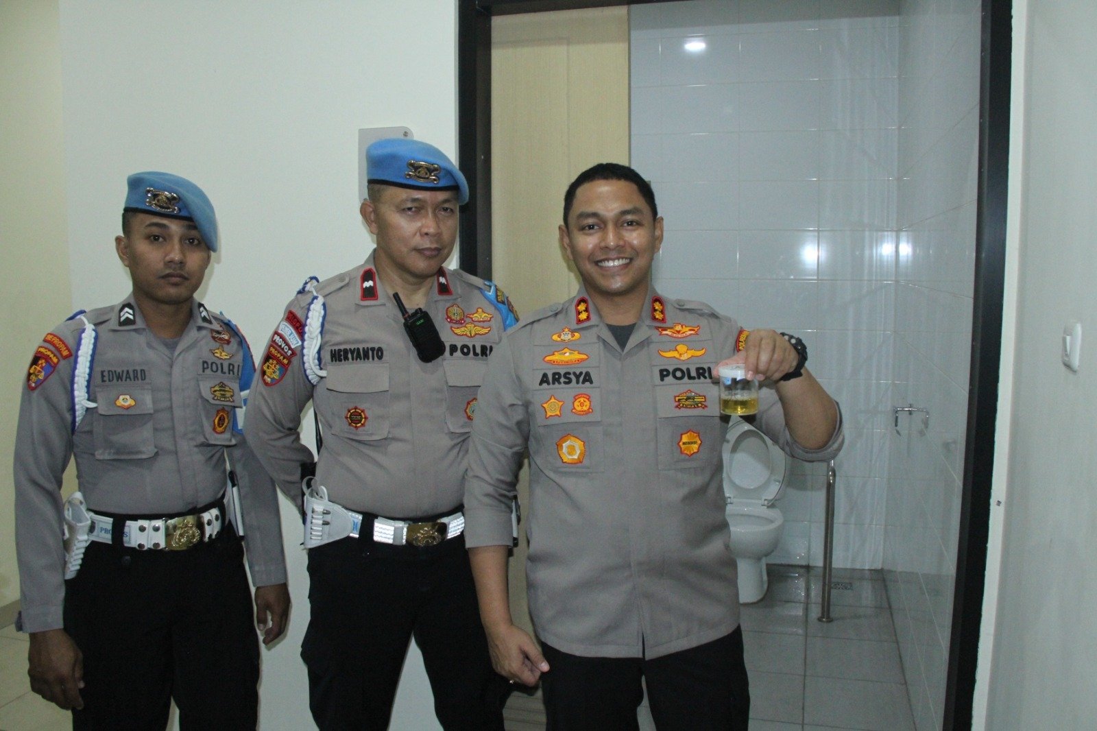 Semua personel yang melaksanakan apel pagi mengikuti pemeriksaan urine ini, sebagai bagian dari upaya untuk memastikan bahwa setiap anggota Kepolisian bebas dari pengaruh narkoba dan zat terlarang lainnya.