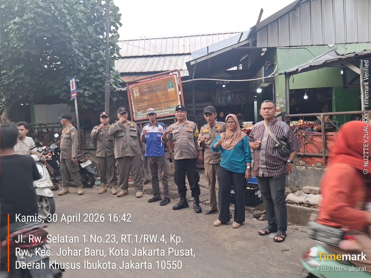Jakarta Pusat – Sinergitas Tiga Pilar Kelurahan Galur kembali ditunjukkan melalui kegiatan rutin sore dengan memberikan imbauan kepada para pedagang kaki lima (PKL) di samping Pasar Gembrong, RW 04, Kelurahan Galur, Kecamatan Johar Baru, Kamis (30/4/2026) pukul 16.30 WIB.