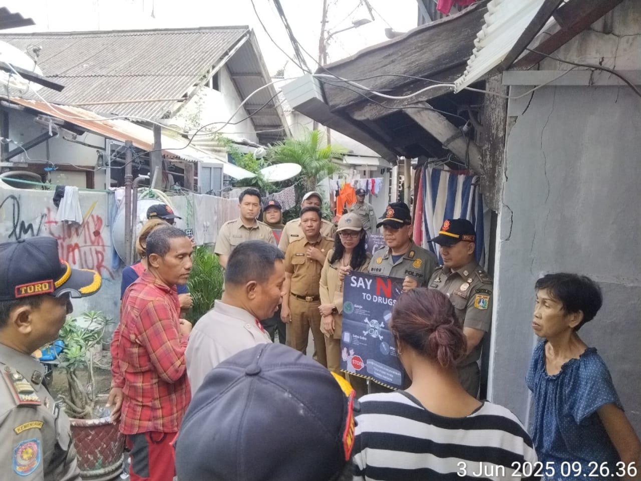 Dalam kegiatan tersebut, petugas menyampaikan imbauan kepada warga tentang bahaya narkoba dengan menggunakan pengeras suara (toa) dan membentangkan spanduk bertuliskan pesan-pesan antinarkoba, seperti “Stop Narkoba”, “Katakan Tidak pada Narkoba”, dan “Kerja Cerdas Tanpa Narkoba.”
