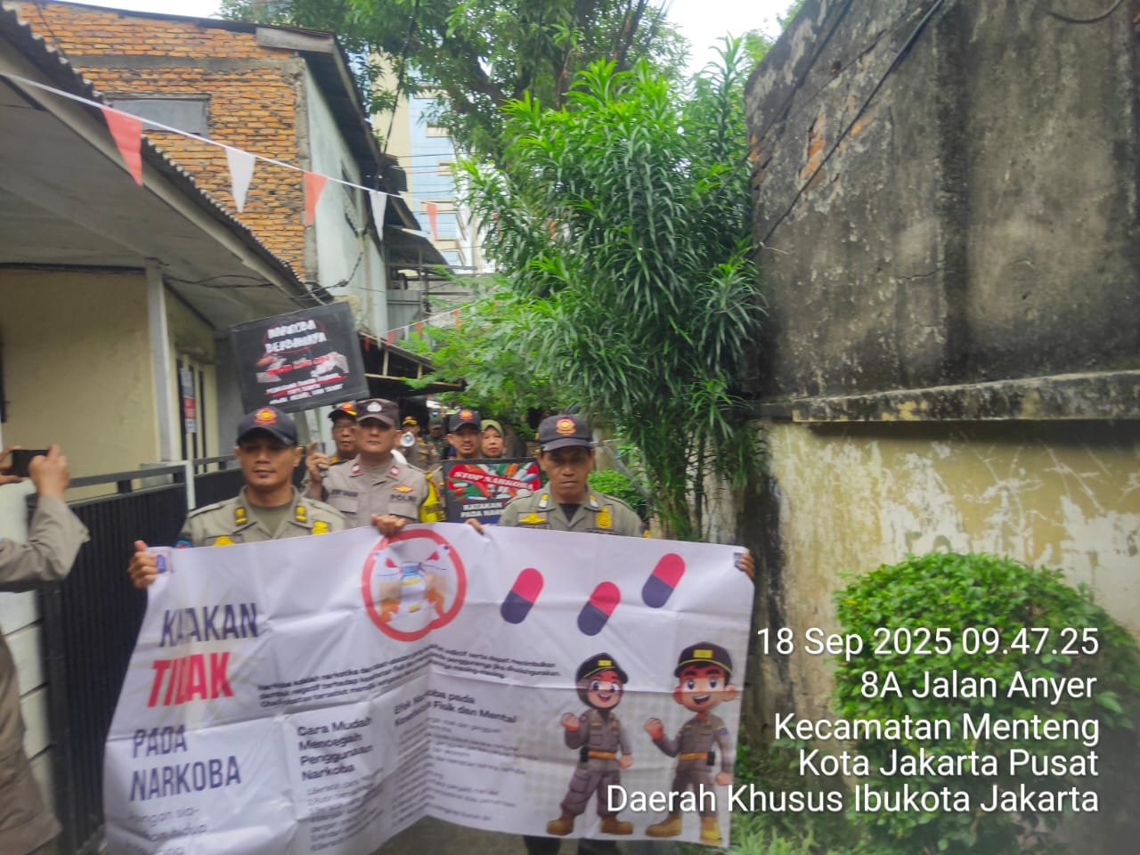refubliknews.com, || Jakarta Pusat — Upaya mencegah penyalahgunaan narkoba di lingkungan masyarakat terus digencarkan. Bhabinkamtibmas Menteng Aiptu Robby Danan Jaya bersama Tiga Pilar Kecamatan Menteng melaksanakan kegiatan sosialisasi bahaya narkoba di pemukiman warga RW 02 dan RW 09, Kelurahan Menteng, Jakarta Pusat, Kamis (18/9/2025).