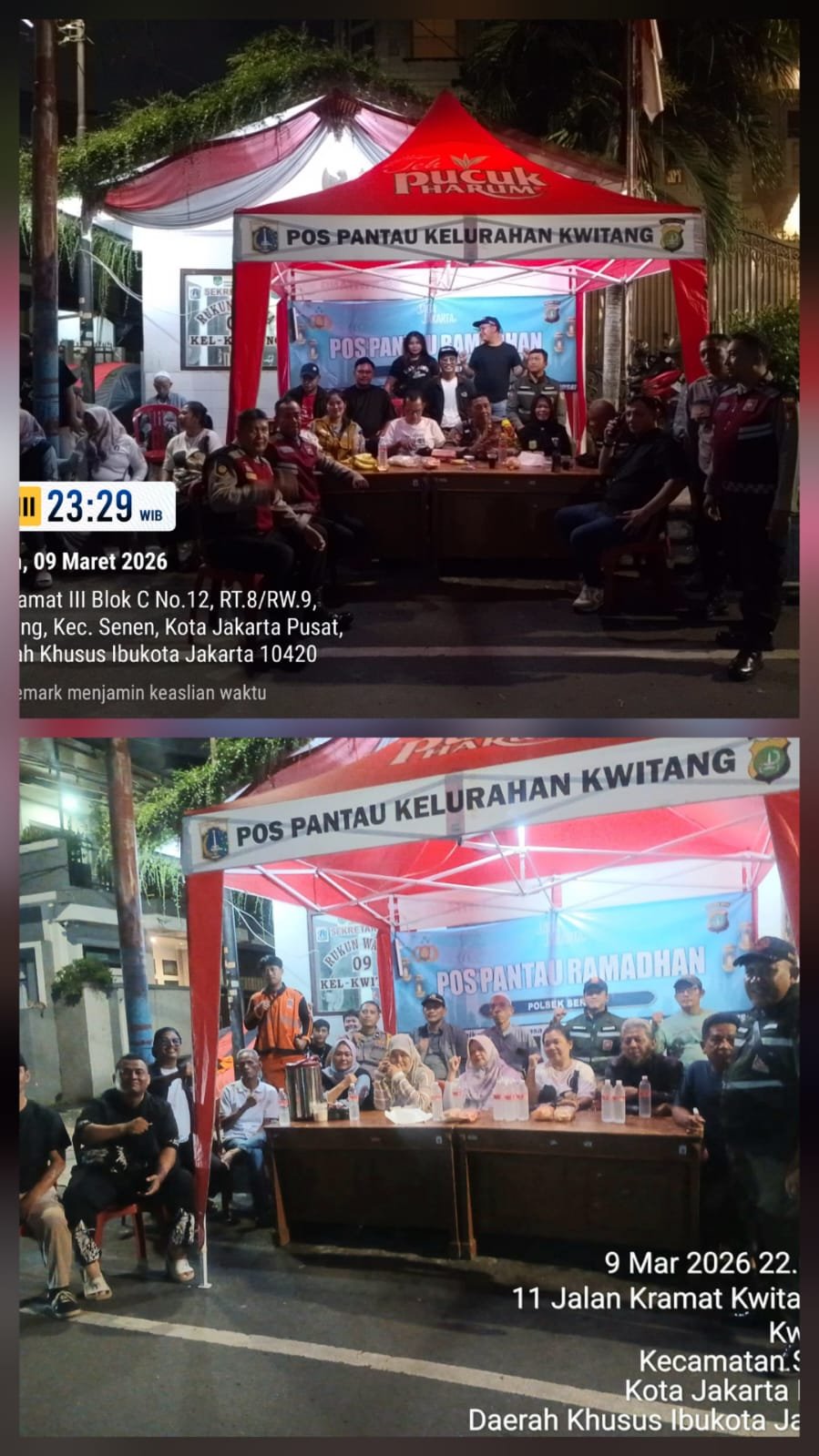 Jakarta pusat, — Petugas gabungan dari unsur Tiga Pilar Kecamatan Senen melakukan pemantauan Pos Pantau Ramadhan 1447 H di wilayah Kelurahan Kwitang, Kecamatan Senen, Jakarta Pusat, Senin (9/3) malam.