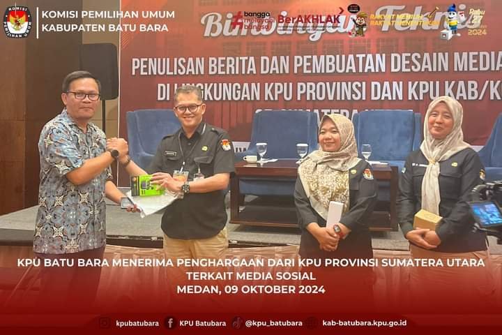 refubliknews.com, – Batubara, | KPU Kabupaten Batu Bara peroleh penghargaan terkait media sosial dalam rangkaian kegiatan Bimtek Penulisan dan Pembuatan Desain Media Sosial, Rabu, (09/10/2024).