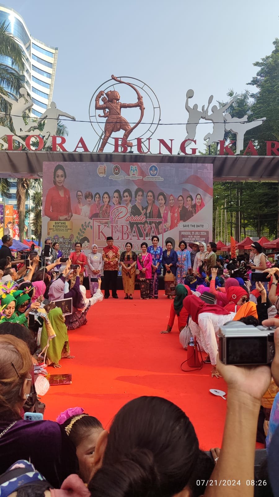 Jakarta – Tim Nasional Kebaya Indonesia, dipimpin Lana Koentjoro, menggelar Parade Kebaya Nasional di Senayan pada tanggal 21 Juli 2024 dalam rangka menyambut Hari Kebaya Nasional yang akan diperingati pada tanggal 24 Juli 2024. Perayaan ini juga dilaksanakan secara serentak di delapan kota lainnya di Indonesia, termasuk Bandung, Surabaya, Aceh, Medan, Palembang, Lampung, Makassar, Samarinda.