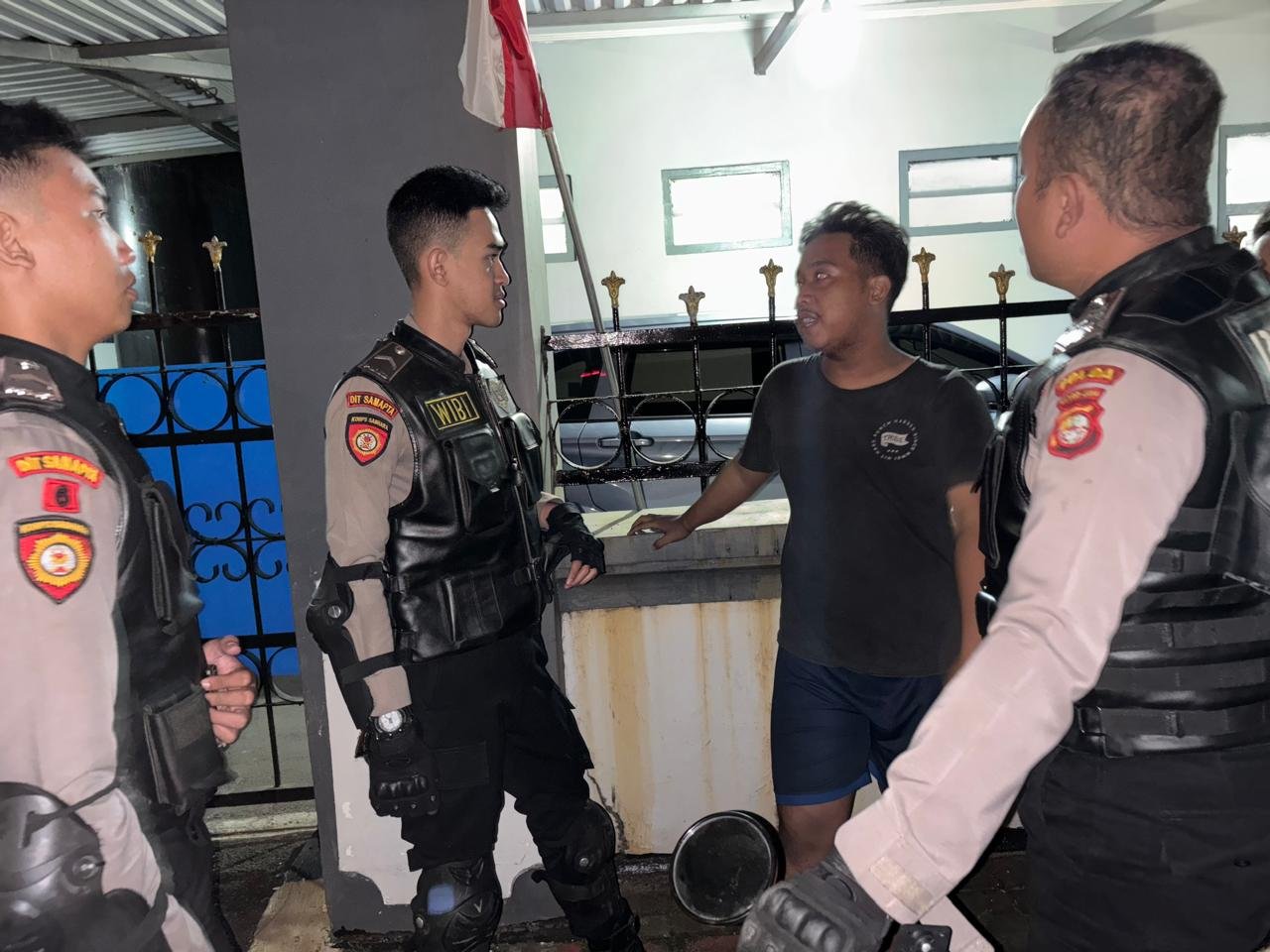 Terduga pelaku tawuran terdiri dari 5 orang inisial AF (18), NMA (21), MRA (16), FA (20), JR (19). Tim Patroli mengamankan barang bukti berupa 1 buah sajam, 1 motor Honda Vario Merah (B 3601 TML), 5 handphone dan 1 Dompet Warna Coklat