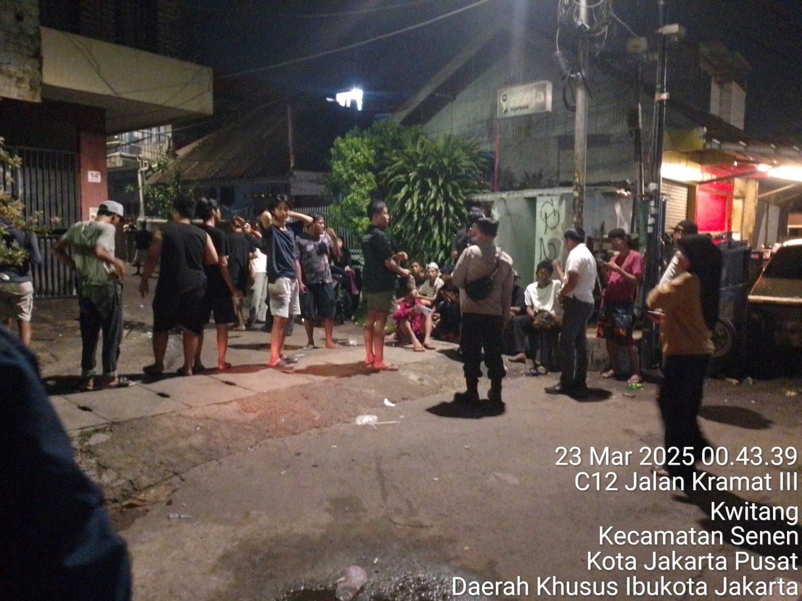 Mendapatkan informasi tersebut, Panit 1 Binmas Aiptu Sukana bersama aparat Kelurahan Kwitang, LMK, Ketua RT/RW, serta PPSU, langsung terjun ke lokasi. Di lokasi tersebut, petugas menemukan sejumlah remaja yang sedang berkumpul dan memainkan gitar. Dengan tegas, petugas menghimbau mereka untuk membubarkan diri dan segera pulang.