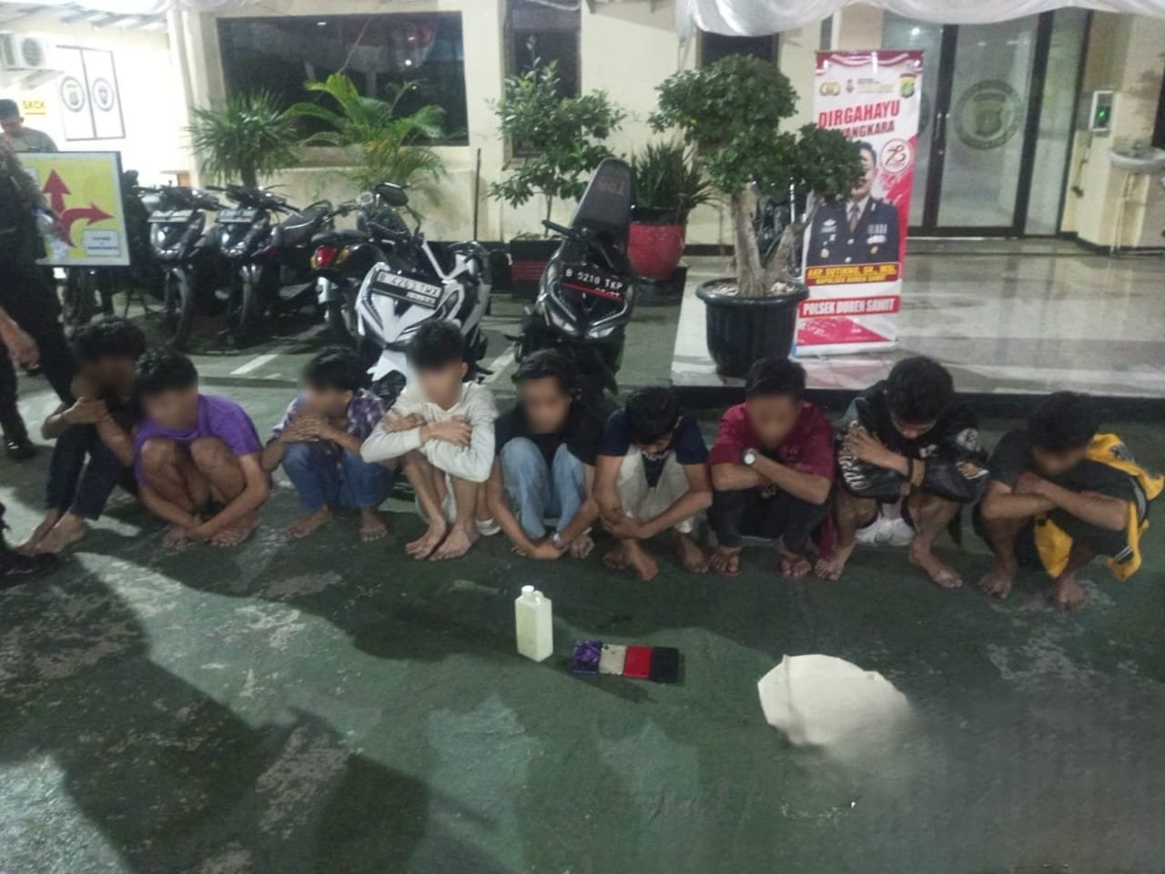 Mereka yang diamankan tersebut yakni inisial GRR (14), RA (19), AFA (13), RA (16), MI (16), MK (16), RAF (17), PMR (22), dan AIM (17).