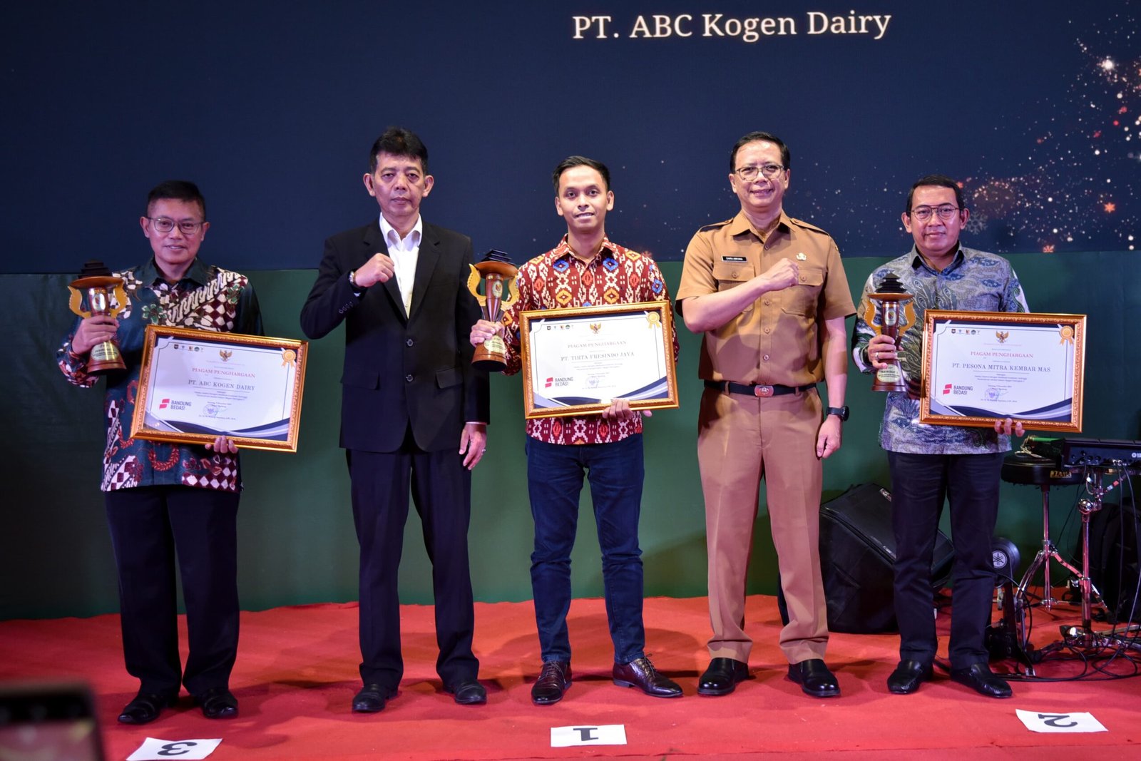Adapun penghargaan sebagai Pelaku Usaha Besar Dengan Jumlah Kemitraan Terbanyak yakni Pertama oleh PT Trisco Tailored Apparel Manufacturing, Kedua oleh PT Ultra Peternakan Bandung Selatan, Ketiga oleh PT Nagasakti Kurnia Textile Mills. (*)