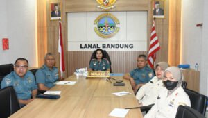 TNI AL, Bandung, 16 Maret 2023,– Komandan Lanal Bandung Kolonel Laut (KH/W) Dr. Renny Setiowati, S.T., M.Sc., M.Tr. Hanla., didampingi Pasprogar Lanal Bandung mengikuti acara Safari Pers Koarmada I Tahun Anggaran 2023 secara Virtual yang dipimpin oleh Danlantamal III Jakarta Brigjen TNI (Mar) Hari Indarto, S.E., M.M., beserta Tim Safari Koarmada I, bertempat di Ruang Rapat Mako Lanal Bandung, Jalan Aria Jipang No. 8, Kota Bandung, Kamis (16/03/2023).