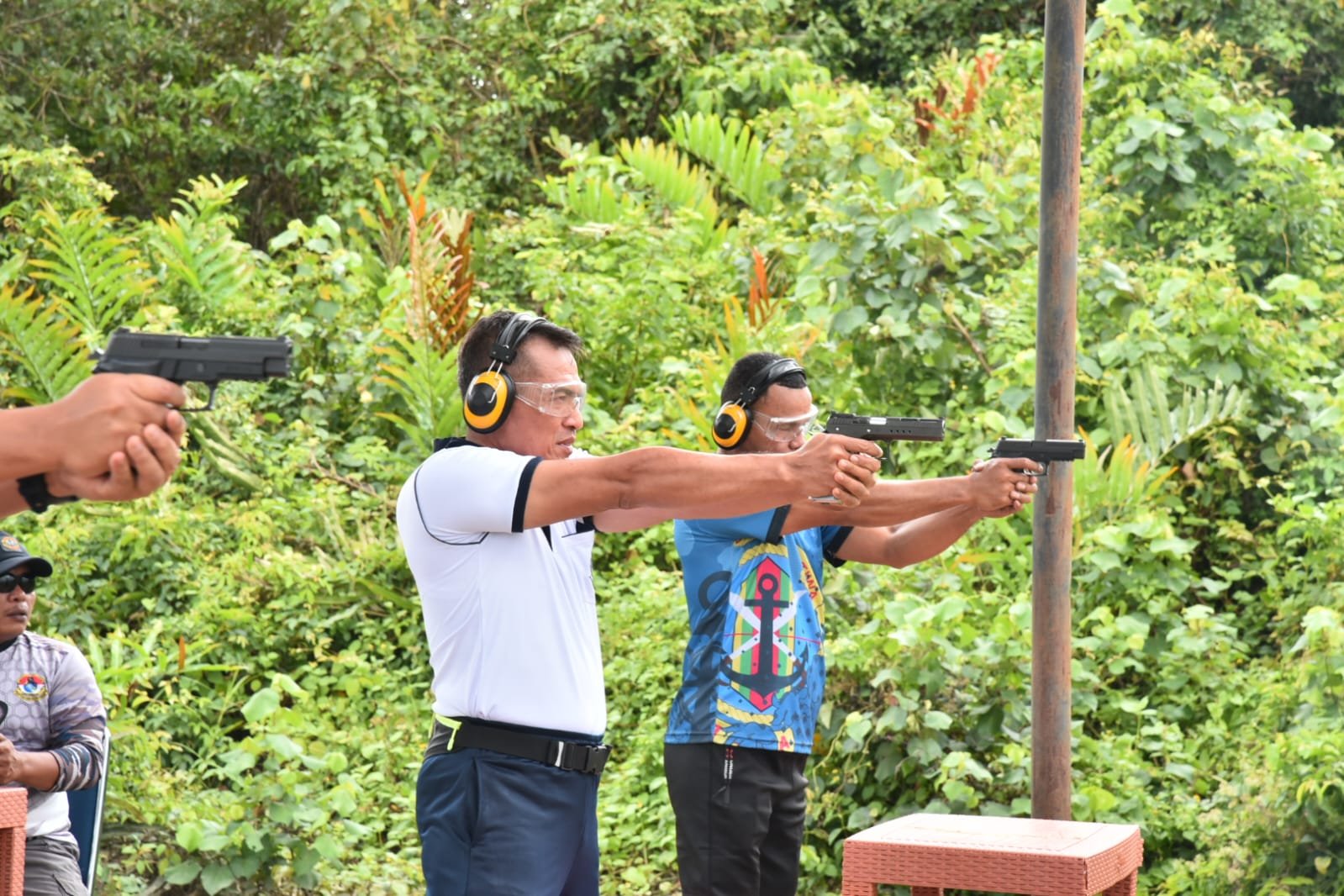 Turut serta dalam latihan menembak pistol, Komandan Gugus Tugas Keamanan Laut (Danguskamla) Koarmada I Laksamana Pertama TNI Isswarto, M.Tr.Opsla, CHRMP., Wadan Lantamal XII, para Pejabat Utama dan Kadis serta Kasatker Lantamal XII yang menunjukkan kemampuan dalam keahlian menembaknya.