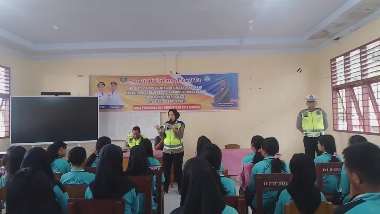 refubliknews.com, || Sibolga – Personel Satuan Lalu Lintas Polres Sibolga melaksanakan kegiatan pembinaan dan penyuluhan (*Binluh*) melalui program *Police Goes To School* sebagai rangkaian Operasi Zebra Toba 2025, pada *Jumat (21/11/2025)* bertempat di *SMPN 4 Sibolga*.