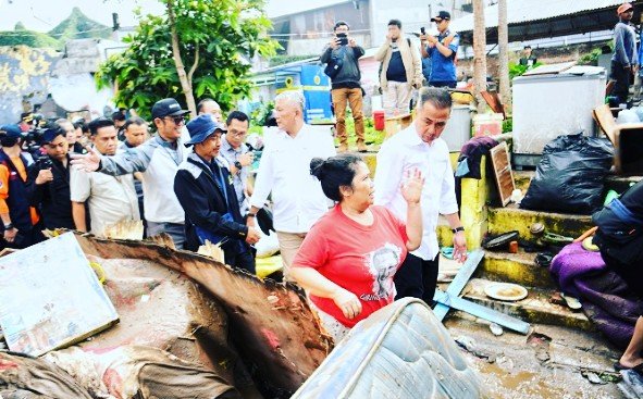 Kota Bandung | Penjabat atau Pj Gubernur Jawa Barat, Bey Machmudin tinjau lokasi banjir bandang yang menerjang kawasan pemukiman pada penduduk dikawasan Braga, Kota Bandung, pada Jumat 12 Januari 2024.