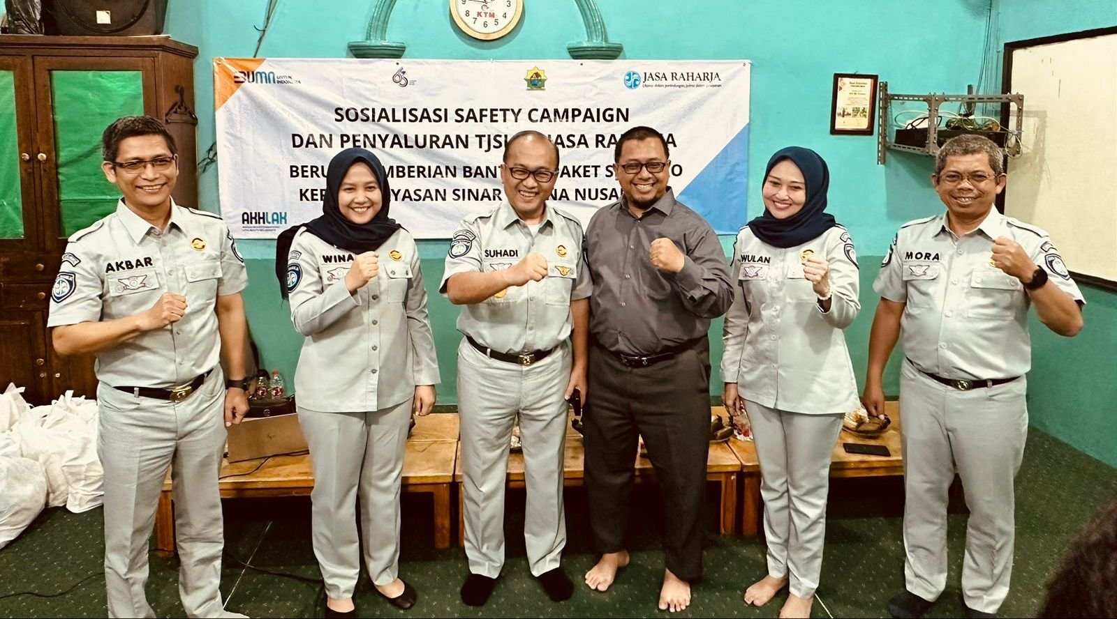 Jakarta – PT Jasa Raharja Cabang Utama DKI Jakarta melaksanakan Sosialisasi Safety Campaign dan Penyaluran Program Tanggung Jawab Sosial dan Lingkungan berupa pemberian paket sembako kepada Yayasan Sinar Warna Nusantara. Pelaksanaan kegiatan ini terselenggara pada hari Senin, tanggal 22 Januari 2024 di Jalan H.Baping Gang Setia RT.003 RW. 09 No. 70 Kel. Ciracas Kec. Ciracas Jakarta Timur (Aula Musholla At-Taubah).