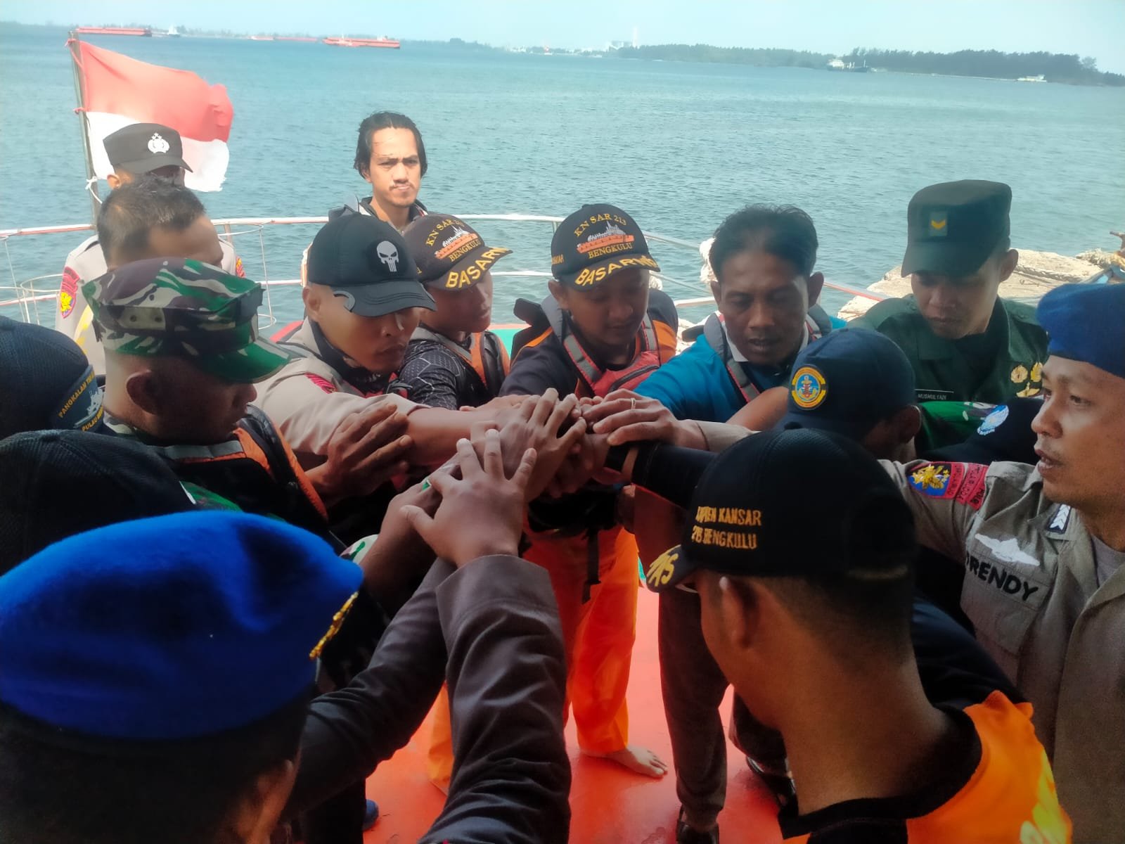 Mendengar informasi tersebut, Danlanal Bengkulu Letkol Laut (P) Yudho Mewah Angkasa, M.Tr. Opsla., memerintahkan Pgs. Pasop Kapten Laut (P) Juswan Simamora segera mengerahkan personel Lanal Bengkulu untuk membantu Basarnas dalam melakukan pencarian dengan menggunakan RHIB (Rigid Huled Inflatable Boat) dan KN 213 milik Basarnas.