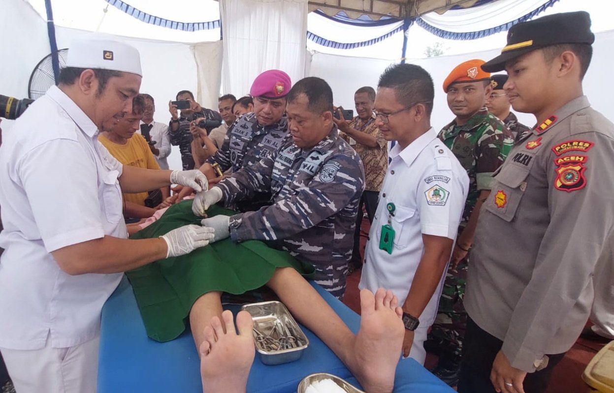 Aceh Utara,- Pangkalan TNI Angkatan Laut (Lanal) Lhokseumawe menggelar Bhakti kesehatan berupa donor darah dan khitanan massal yang dilaksanakan di atas Kapal Angkatan Laut (KAL) Bireuen I-1-70, yang sandar di Dermaga Pelabuhan Krueng Geukuh, Kecamatan Dewantara, Kabupaten Aceh Utara, Selasa (6/09/2022).