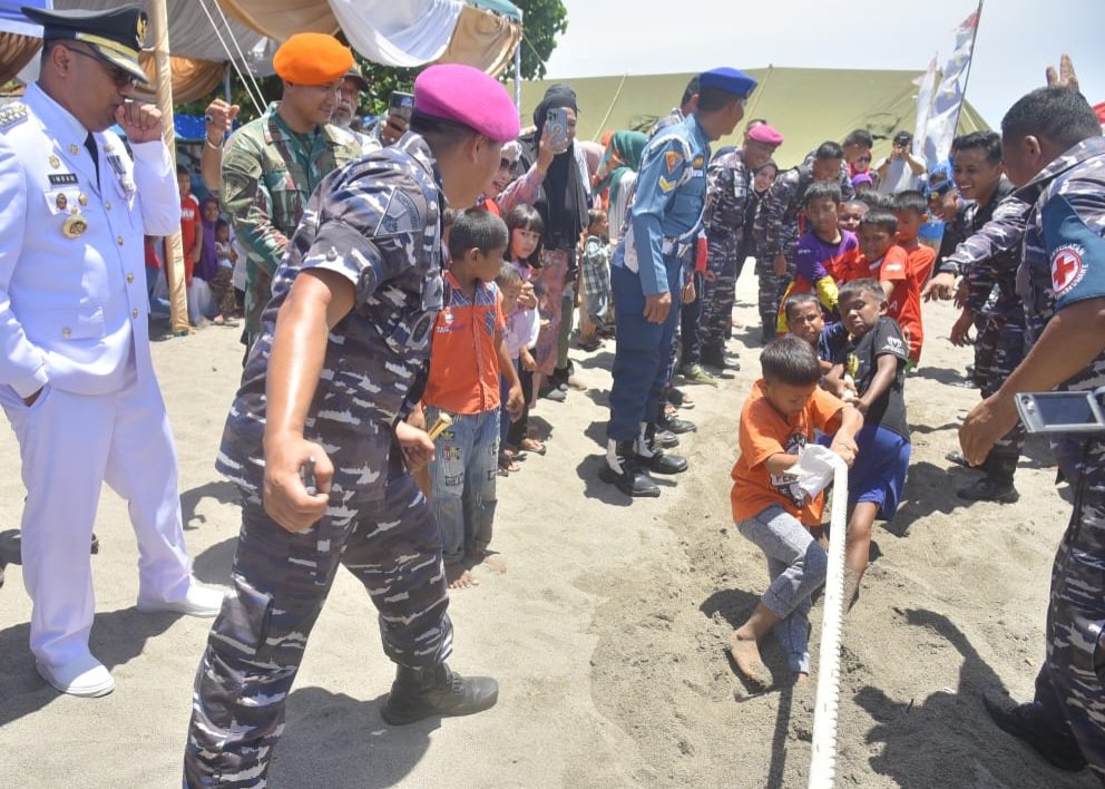Apalagi saat menyaksikan anak-anak lomba tarik tambang mendapat sorak-sorai dari pengunjung, bahkan Komandan Lanal sendiri Kolonel Marinir Dian Suryansyah ikut menyemangati para anak-anak yang ikut lomba Tarik tambang itu. “Tarik terus, Tarik teruuus, ayo jangan sampai kalah,” katanya.