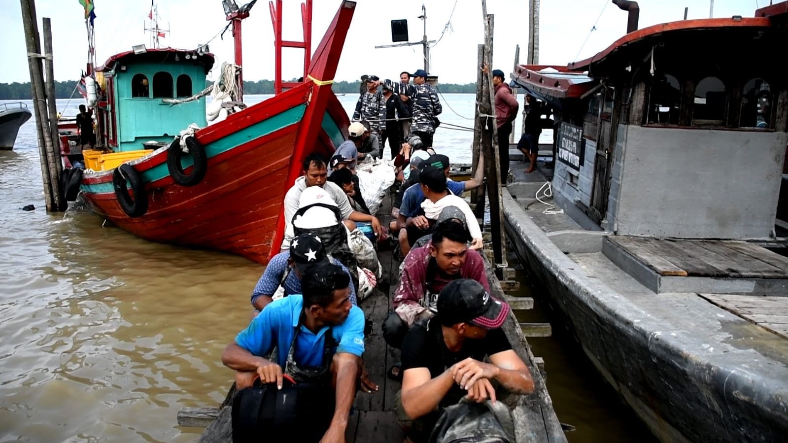 Tim F1QR (Fleet One Quick Response) Lanal Tanjung Balai Asahan Koarmada I menangkap 19 Pekerja Migran Indonesia (PMI) ilegal disekitar Perairan Sarang Helang Kabupaten Asahan pada titik koordinat 03°06′ 21″ U – 99°55′ 58″ T, Kamis (9/3/2023).