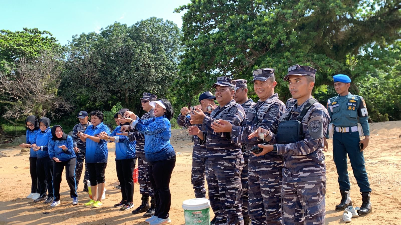 TNI AL, Tanjung Balai,- Komandan Lanal Tanjung Balai Asahan Letkol Laut (P) Aan Prana Tuah Sebayang, S.E., D.W.C., didampingi Ketua Cabang 7 Korcab I DJA I Ny. Elisa Aan Sebayang bersama Perwira Staf melakukan kunjungan ke Pulau Perbatasan Pos TNI AL Pulau Jemur dalam rangka pelepaskan tukik di Perairan Pulau Jemur, Kecamatan Pasir Limau Kapas, Kabupaten Rokan Hilir, Provinsi Riau, Kamis (11/5/2023).