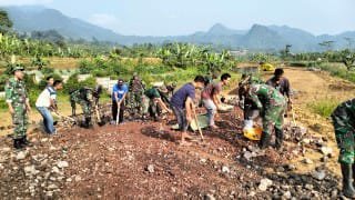 Kodim 0621/Kab Bogor di hari ke-3 TMMD 120 di wilayah Desa wargajaya dan Sinarjaya Kecamatan Sukamakmur Kabupaten Bogor melibatkan 210 orang personel gabungan baik dari TNI AD, AU, Kepolisian dan masyarakat. Sabtu (11/5/2024)
