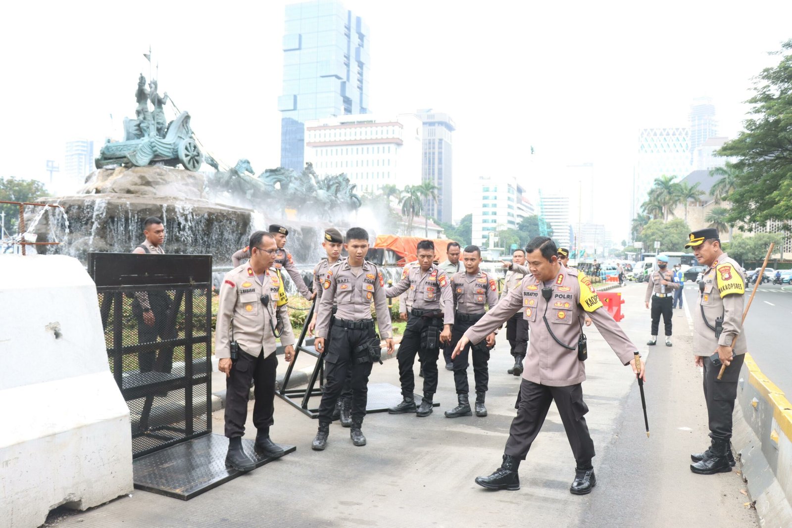 Kapolres Metro Jakarta Pusat Kombes Pol Susatyo Purnomo Condro mengatakan “Hari ini kami siap mengamankan buruh dan elemen masyarakat yang akan menyampaikan pendapat dan kami menerjunkan 3.454 personel gabungan TNI, Polri yang dibantu Pol PP, Damkar serta Dishub yang nantinya akan di bagi di beberapa titik pengamanan di sekitaran Monas dan GBK.”
