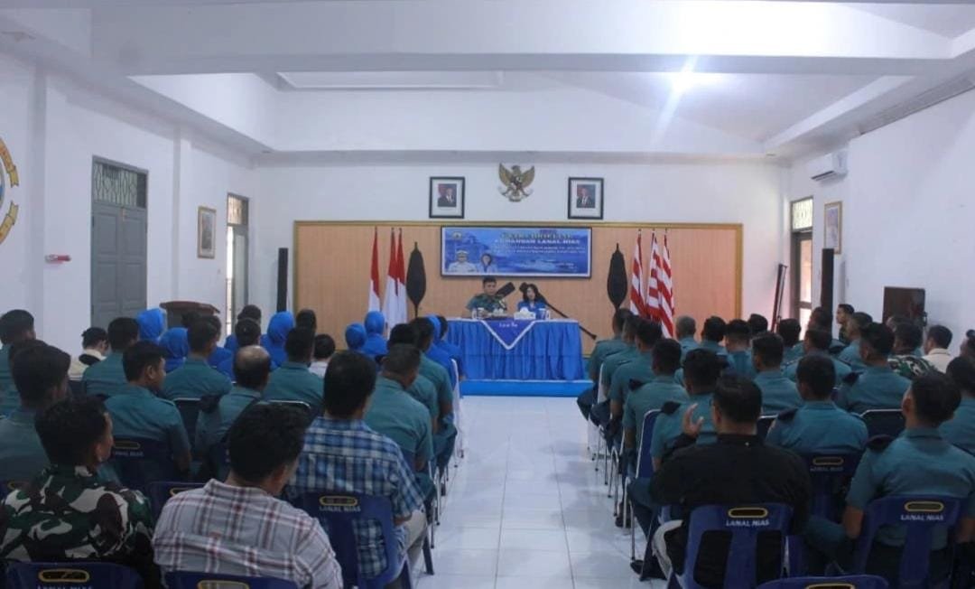 Selesai acara tradisi penyambutan, dilanjutkan kegiatan Entry Briefing Komandan Lanal Nias kepada seluruh Prajurit dan PNS Lanal Nias, di Ruang Bima Mako Lanal Nias, Jalan Baloho Indah, Kecamatan Telukdalam, Kabupaten Nias Selatan, Provinsi Sumatera Utara.